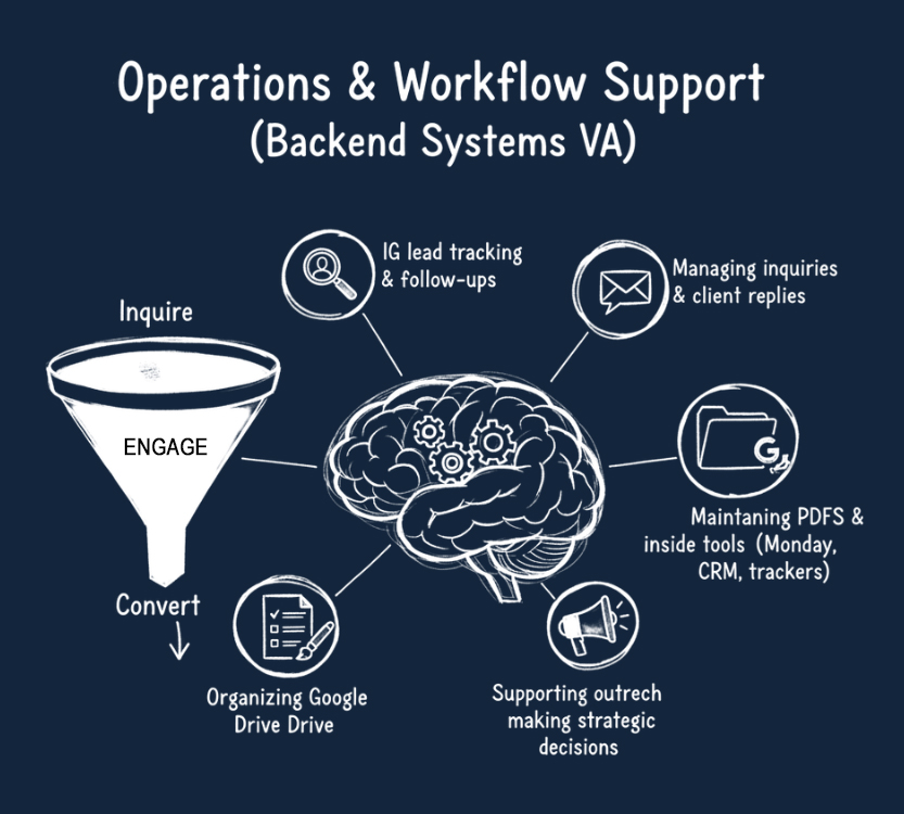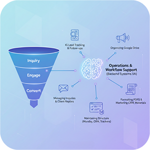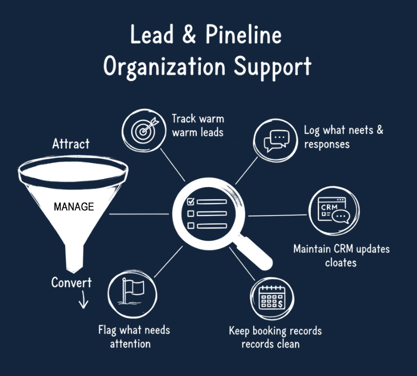 Structured operational support from the Philippines — specializing in CRM management, lead tracking, and workflow organization. So your business grows with clarity, not chaos.